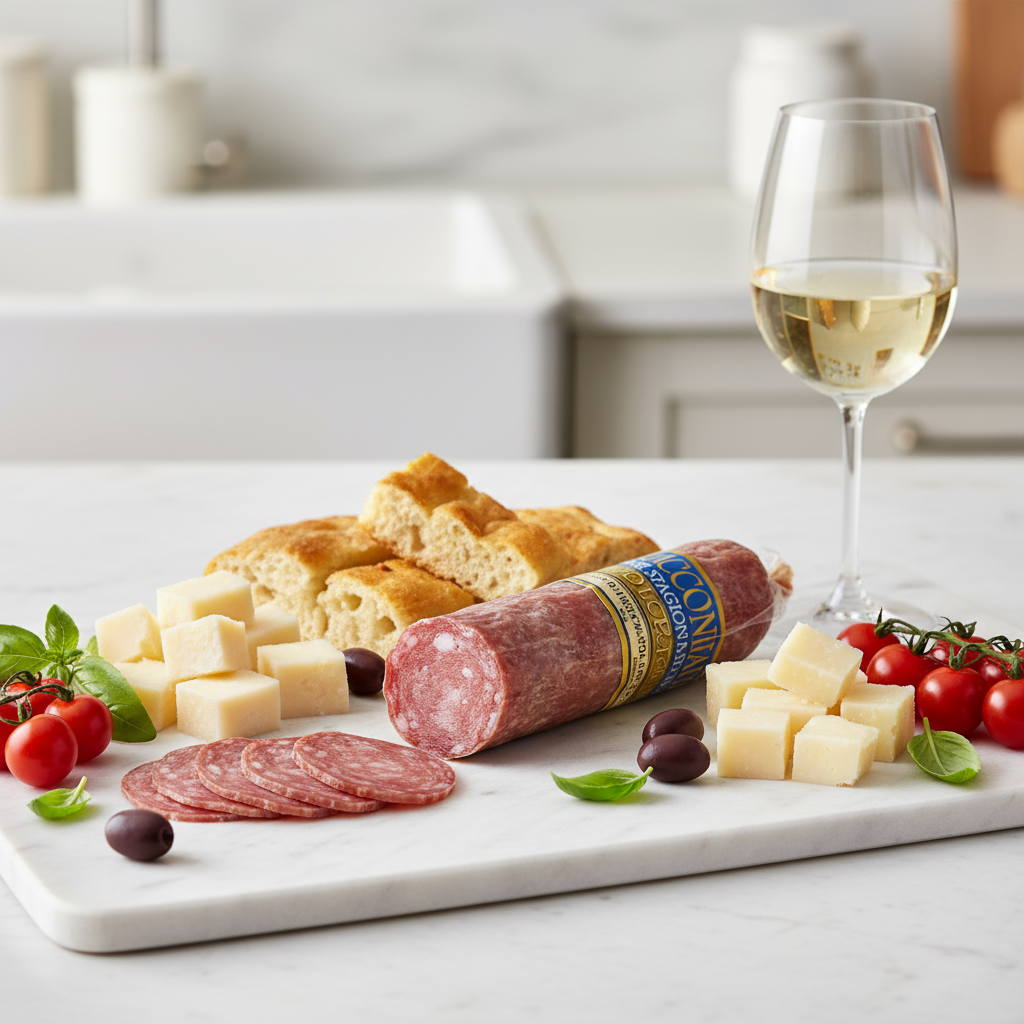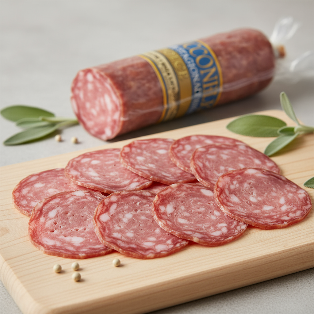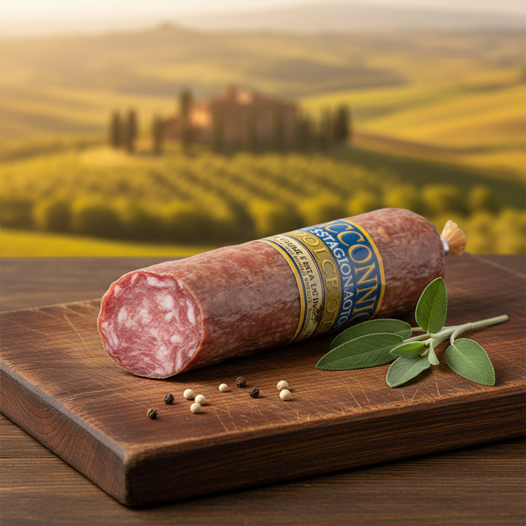 Genießen Sie die sanfte Seite der italienischen Salami-Kunst mit unserem Salame Dolce – einer milden Salami, die perfekt für alle geeignet ist, die authentischen italienischen Geschmack ohne intensive Schärfe bevorzugen. Diese handwerklich hergestellte Delikatesse wird aus sorgfältig ausgewähltem Schweinefleisch gefertigt und mit einer harmonischen Mischung aus milden Gewürzen verfeinert. Die schonende Reifung verleiht ihr ein zartes, ausgewogenes Aroma, das sowohl Kinder als auch Erwachsene begeistert. Mit ihrer feinen Textur und dem delikaten Geschmack ist sie die ideale Wahl für elegante Antipasti-Platten, als Belag für italienische Panini oder als milde Zutat für Pasta-Salate. Die 140g Portion bietet Ihnen vielseitige Verwendungsmöglichkeiten und passt hervorragend zu milden italienischen Käsesorten und frischem Brot. Entdecken Sie die Eleganz der Einfachheit – eine Salami, die durch ihre Milde und Qualität überzeugt.